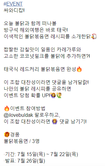 삼양식품 싸와디캅! 페이스북 팔로우 이벤트에 대한 정보를 알아보았습니다.